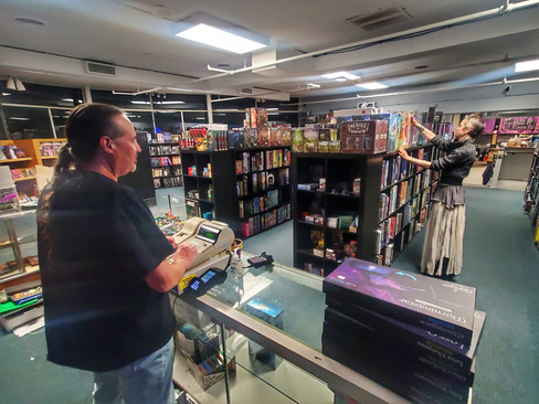 “I started the company because I wanted a place where people could not only buy games but come and play,” he explained. “I was raised on board games and card games and miniatures games, and I wanted to welcome that community of people to a clean, well-lit, organized place where they could socialize.”