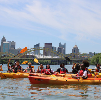 Our work branches out in a few different ways. At Kayak Pittsburgh we rent kayaks, SUPs, canoes and pedal boats so folks can explore our region’s waterways. Our community programs calendar offers a wide array of programs that anyone can join including mountain biking, mindfulness hikes, fireworks paddles, snowboarding and birding walks. Lastly, our youth programs focus on reaching students in schools, during after care and at summer camp. We teach kids how to build fires, hike, bike, geocache, fish and more.